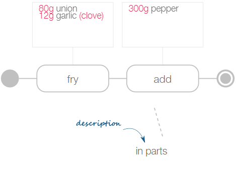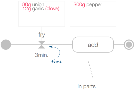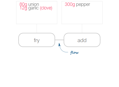 Often, you will prepare different instructions simultaneously, like cutting unions while boiling rice. (currently not available in flow creator)
