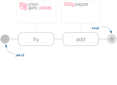 A sequence of instructions forms a process, visualised by a flow relation. The result of the previous instructions is the input of the following instruction.